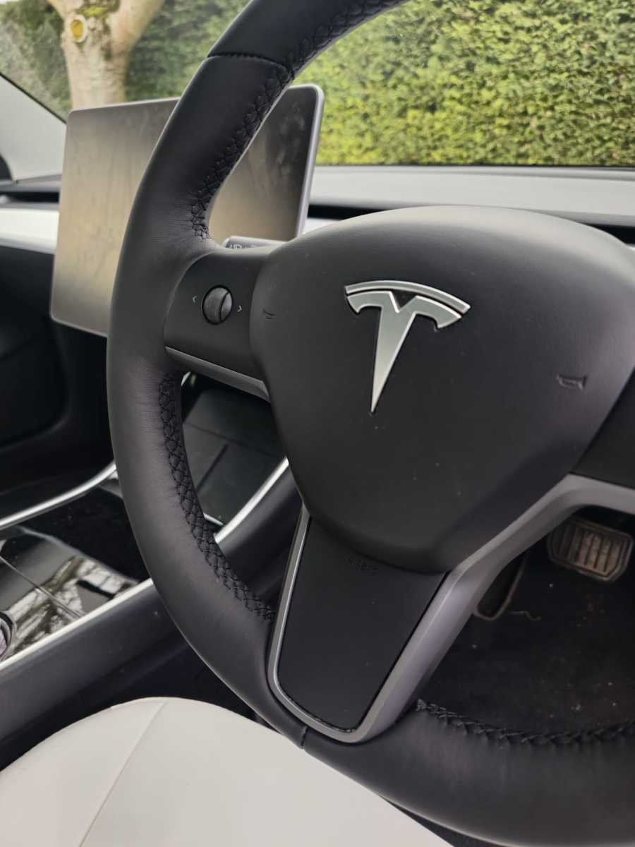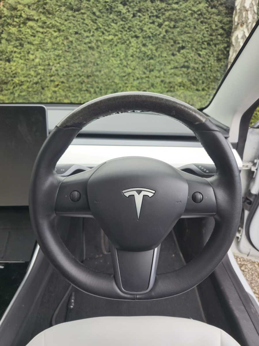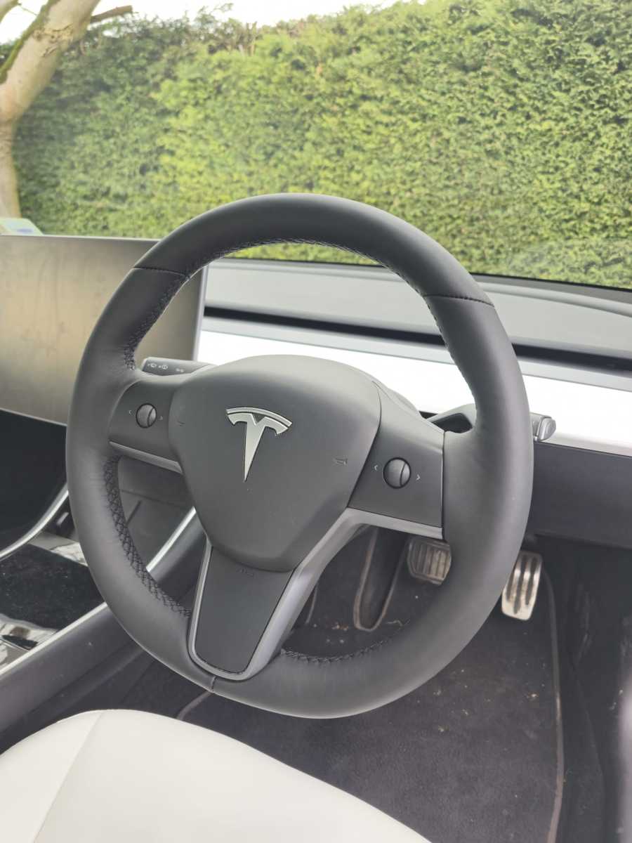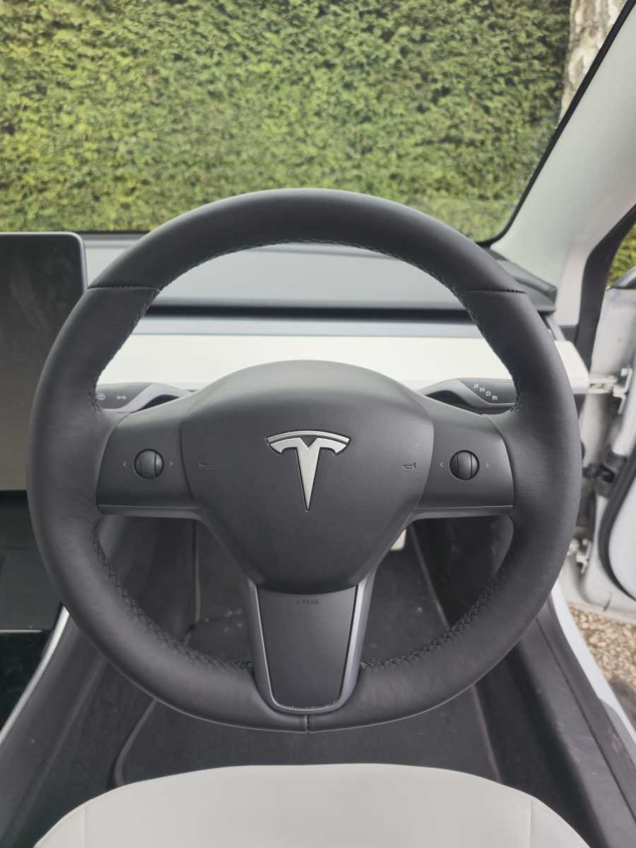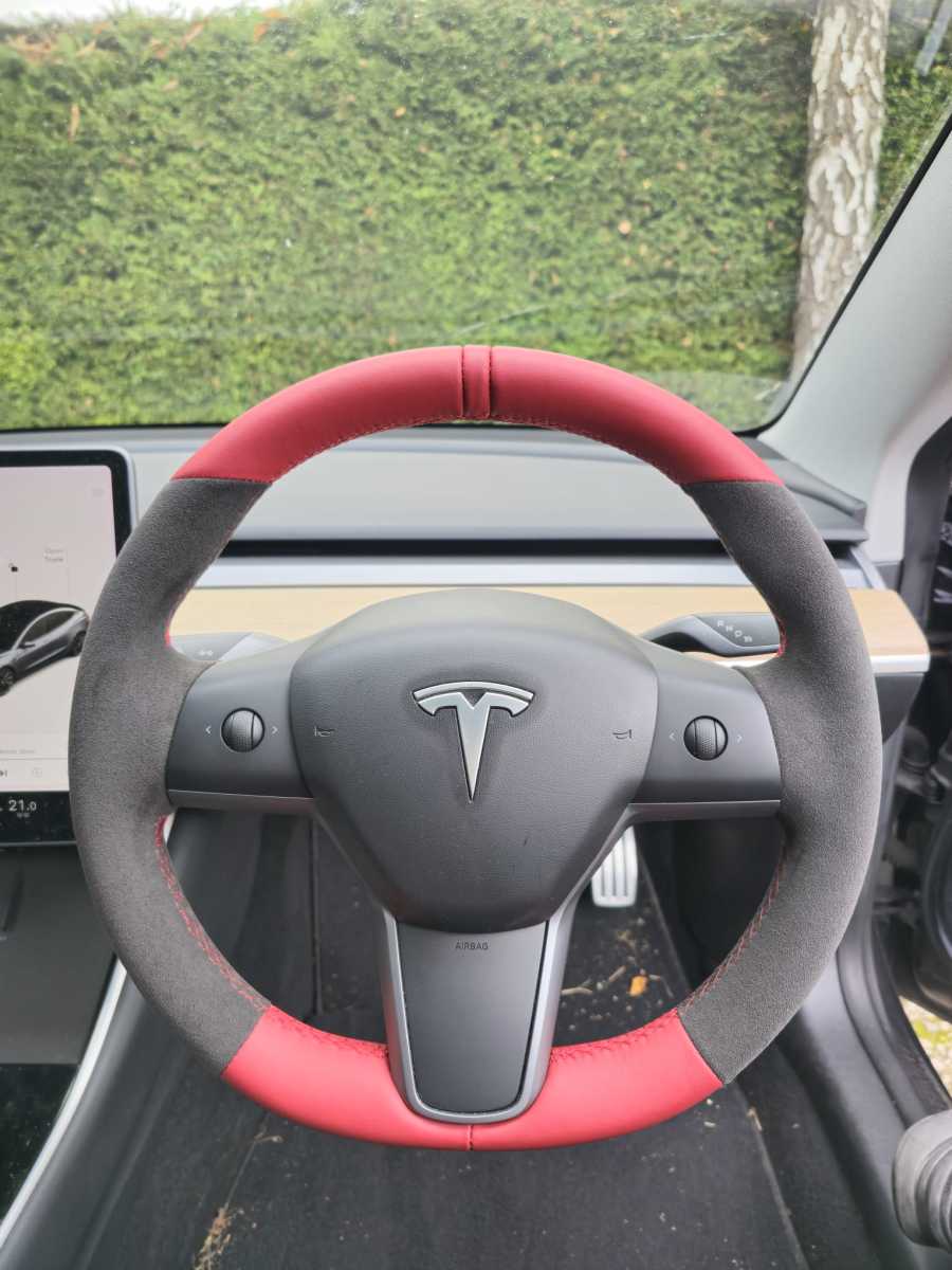 Tesla-3-2020-Full-modification-with-Flat-bottom-PROFILES-Perofrated-leather-on-sides-Smooth-top-bottom-Dark-grey-416-stitching-1