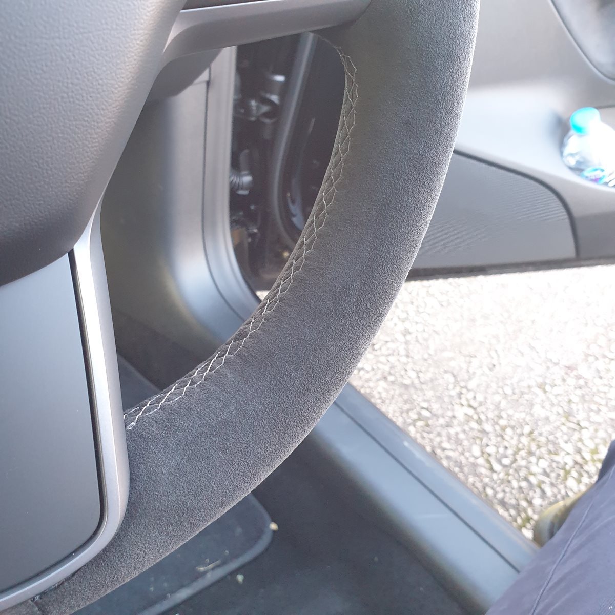 Tesla-3-2020-Full-modification-with-Flat-bottom-PROFILES-SMOOTH-leather-on-sides-Dark-grey-Alcantara-9002-top-bottom-Light-grey-centre-stripe-Light-grey-412-stitching-3